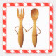 Creative bridal shower gift stickers, party favor labels or envelope seals featuring a cute bride and groom fork and spoon on a red gingham background.