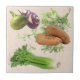 Brighten your kitchen with these charming ceramic tiles decorated with images of freshly grown vegetables. Gues Who has created nine patterns, each with a different set of home grown garden vegetables. Each style has an herb/beige background. The 4.25 x 4.25 size makes these tiles perfect to use as a spoon holder for a ladle, baster or spoon as you are preparing your family's meal. Choose all nine tiles and use them as a colorful border for your kitchen back-splash or, choose a few and use them as a collage to brighten your kitchen wall.