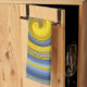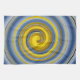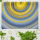 A yellow-blue spiral with fine grey and black lines is the Design of this kitchen cloth.