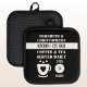 Add a touch of love to your kitchen with our charming black pot holder! Featuring a cute coffee cup design with adorable love hearts, this customizable kitchen essential lets you add your names and established year. Perfect for couples who cherish their daily coffee or tea rituals, it proudly boasts "Coffee and Tea Served Daily, Open 24 Hours." Whether you’re a morning coffee enthusiast or a late-night tea lover, this pot holder is a sweet reminder that your kitchen is always open for love and warmth.