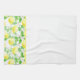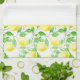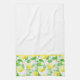 Shown is this kitchen towel in a lovely lemons print on a White towel.