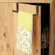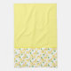 Shown is this kitchen towel in a lovely lemons print on a yellow towel.