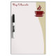 Kitchen dry erase message board in a modern design that includes a cute coffee cup and text you can personalize with your name, initials, or leave the things to remember. Designed to keep shopping lists, to-do lists, appointments and special events where everyone can see. Designed for office or home.
