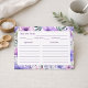 Kitchen Gift Elegant Purple Floral Recipe Card