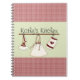 Write down all your favorite recipes in your very own personalized notebook. Design features a lovely red country plaid kitchen theme. Use the text template to insert any wording you desire. Notebook pictures a country like red plaid top and bottom with a light sage green strip across the center and a design of a heart themed oven mitt, apron and baking hat hanging from hooks of a shelf. Great house warming gift.