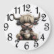 A Colorful Cartoon Highland Cow With Coffee Cup. A Numbered Large Acrylic Kitchen Wall Clock
