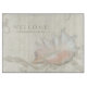 Ideal hostess gift, house warming gift or a special wedding or bridal shower present for the newly married couple. Personalized with their name and a Welcome message for their guests and easily changed using the template fields provided. The artwork was painted by Audrey Jeanne Roberts in a loose, painterly style that is both contemporary modern and romantically elegant. A background of worn distressed aged crackling painted wood sets off the hand drawn scroll swirl flourishes and the interior of a queen conch shell. Copyright all rights reserved.