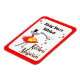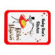 A custom fridge magnet with retro script letters for your name, reading Kitchen Magician with a magical cooking girl with sparkly retro letters in black, red and yellow with a red border.