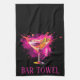 Martini Mixologist bartender Kitchen or Bar Towel Pink Cocktail. Pink cocktail martini with a splash. Customize your font, text, colors and more with this classy bartending towel home decor. Mixology, mixologist, bartender or bar lounge classy hot pink on black theme.