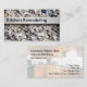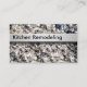 Kitchen remodeling business card template designed with striking stone marble background art digitally printed to mimic a counter surface and includes a full kitchen backdrop on the back lightly printed so it stays behind your contact details. Created for a remodeling contractor or home builder that also does construction remodeling.