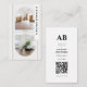 Modern chic business card featuring your photo overlaid with your profession and name in bold, trendy typography. The back includes space for your website URL to create a scannable QR code and personalized contact information.
