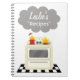 A recipe notebook featuring an illustration of a retro inspired stove sitting on a black and white surface. Red pot and pan on stove have flames shooting from them and a cloud of smoke hovers above the stove. A great way to laugh at your own lack of culinary skill....not reccomened as a gift for others! Personalize with your name.