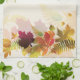 Kitchen towel shown in a off white color with a art print of autumn fall leaves.