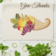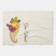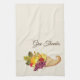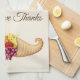 Kitchen towel shown in a off white color with a art print of a Thanksgiving cornucopia.