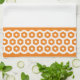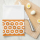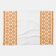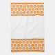 Hexagon shapes in white on a background of orange, create two bands on either end of the towel. Customize the "font" color to coordinate with your decor.