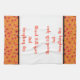 This kitchen towel is shown in fall color mix of orange, yellows and red leaves at the bottom edges with orange and black accent stripes. Words of "Blessed with spice and everything nice". Shown on a white towel.