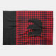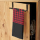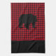 This kitchen towel is shown in a cute black and red buffalo plaid print design with a bear print.