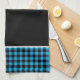 This kitchen towel is shown in a cute black and blue color buffalo plaid print design.
