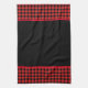 This kitchen towel is shown in a cute black and red buffalo plaid print design.