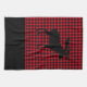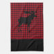 This kitchen towel is shown in a cute black and red buffalo plaid print design with a moose print.