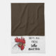 "Bless all those who roost here" is the caption on this Espresso Brown and White kitchen towel featuring a White and Red chicken head. Customize this item or buy as shown.