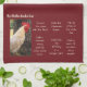 Shown on Burgundy Red, this kitchen towel has photos of a Rhode Island White chicken rooster. Text of the bucket list consists of several joke/humorous statements a rooster might make on a bucket list. Customize this item or buy as shown.