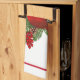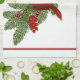 Holiday kitchen towel shown in white with a festive Christmas red cardinal bird design.