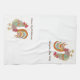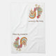 Kitchen towel shown in white with a fanciful rooster chicken art print design. Text on towel reads "Bless My Chickens". Multi Color.