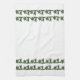 Bracket with "wrought iron" look is replicated in two rows at each end of towel. Image is shades of green.
