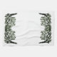 Trees with delicate leaves on weeping branches. intertwine in the middle. Image is black with green tones. Image is mirrored on the ends of towel.
