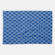 This kitchen towel is shown with a lovely royal blue and white Moroccan print design.