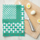 A stylish Kitchen Towel or Tea Towel, with a geometric pattern in trending Emerald Green.