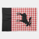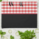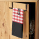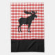 This kitchen towel is shown in a cute red plaid print design with a moose print.