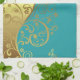 This design is a computer generated image of gold swirls on a teal background.The gold in this artwork is computer generated. There is no actual gold used in the making of this product.