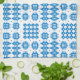 A chic Tea Towel or Kitchen Towel, with a pattern of traditional Welsh Tapestry motifs in Bright Blue on a White background.
