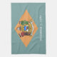 Crafted with meticulous attention to detail, this kitchen towel celebrates the rich heritage and cultural pride of Delaware. The flag of Delaware features a field of colonial blue with a buff-colored diamond in the center. Inside the diamond is the state coat of arms, which includes a shield with a sailing ship, a farmer, and a soldier representing Delaware's commerce, agriculture, and military traditions. Above the shield is a banner that reads "December 7, 1787," commemorating the day Delaware became the first state to ratify the U.S. Constitution.