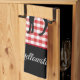 This kitchen towel is shown in a cute red plaid print design with a Yellowstone Elk print.