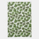 This kitchen towel is shown in a lovely green tropical palms print.