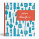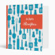 Fun and modern recipe binder. Features kitchen utensils in aqua color on a white background with a coral color spine. Great for a chef, a food enthusiast or a catering company. Customized it with your name or your business name. Makes a great custom gift. Bright and colorful design.