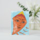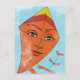A cool, weird and unique kite postcard featuring an orange kite on a blue sky background and an unusual human face.