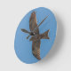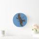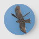 Wall clock with funny portrait of a Kite in flight against blue sky.