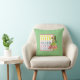 Kitschy & cool throw pillow for Mahjong lovers features vintage costumed fairy cutout, mahjong tiles and "mahjong queen" text on light green background.