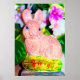 Small rabbit statue with African violets in background. Decorative Easter rabbit. Kitsch art and design. Kitschy decor and extremely sentimental. Classic film photography from Minolta Vintage 35mm Camera. Perfect gift for rabbit decoration lover.