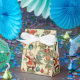 This whimsical Santa favor box exudes a playful nostalgia, transporting you to a bygone era of holiday cheer. The background is a warm, creamy beige reminiscent of vintage parchment, allowing the vibrant illustrations to pop with festive merriment.