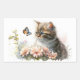 Cute kitten with a butterfly in a garden in a watercolor artwork effect.
