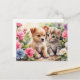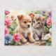 Kitten and Puppy in the Flower Garden Illustration Postcard