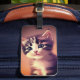 This luggage tag has a cute kitten on it.
