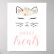kitten birthday party sweet treats sign with pretty floral kitty face