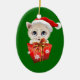 Kitten Christmas Santa with Gift Ceramic Ornament