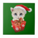 Kitten Christmas Santa with Gift Tile